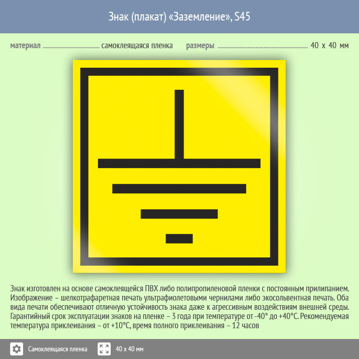 Знак (плакат) «Заземление», S45 (25 штук пленка, 40х40 мм) в Курске купить