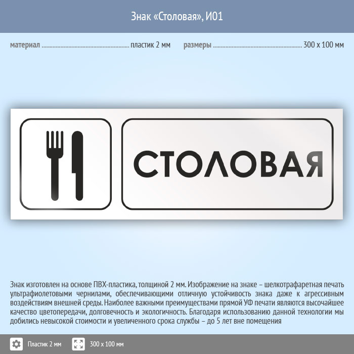 Знак «Столовая», И01 (пластик, 300х100 мм) в Курске купить