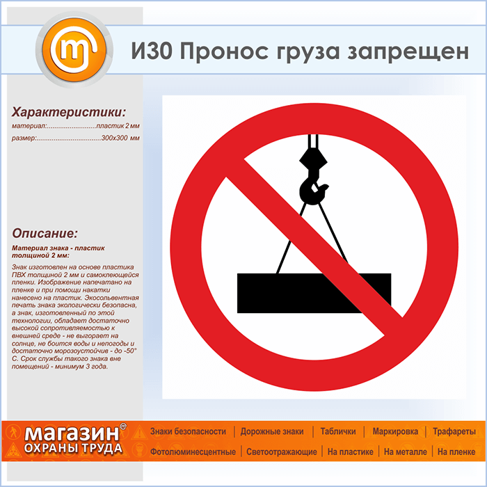 Знак «Пронос груза запрещен», И30 (пластик, 300х300 мм) в Курске купить