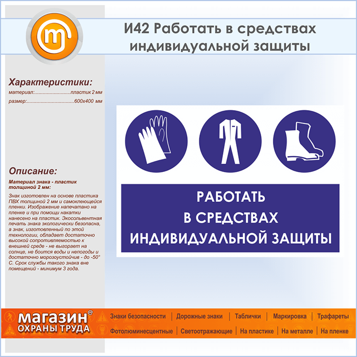 Знак «Работать в средствах индивидуальной защиты», И42 (пластик, 600х400 мм) в Курске купить