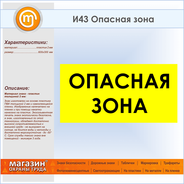 Знак «Опасная зона», И43 (пластик, 600х300 мм) в Курске купить