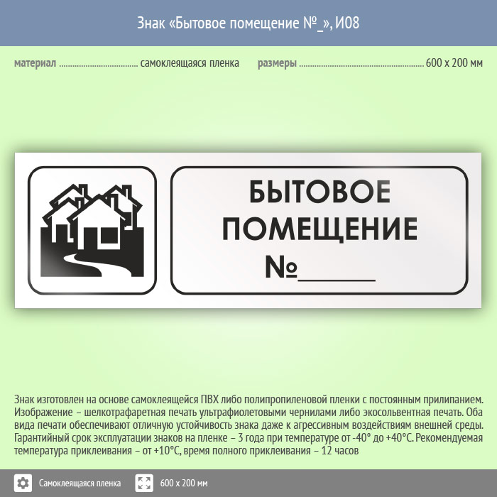 Знак «Бытовое помещение №_», И08 (пленка, 600х200 мм) в Курске купить