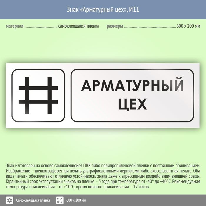Знак «Арматурный цех», И11 (пленка, 600х200 мм) в Курске купить