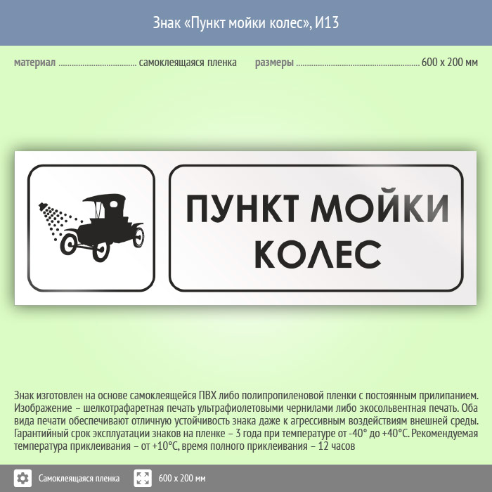 Знак «Пункт мойки колес», И13 (пленка, 600х200 мм) в Курске купить