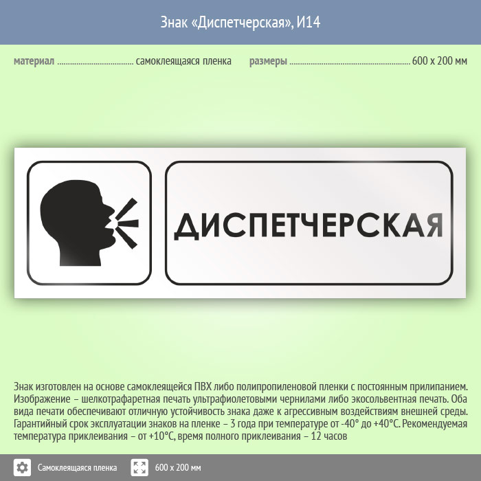 Знак «Диспетчерская», И14 (пленка, 600х200 мм) в Курске купить