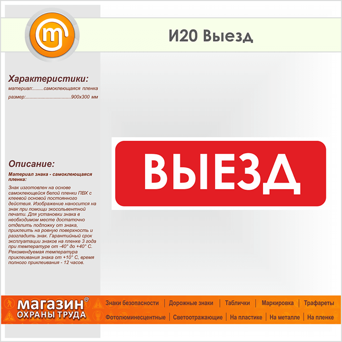 Знак «Выезд», И20 (пленка, 900х300 мм) в Курске купить