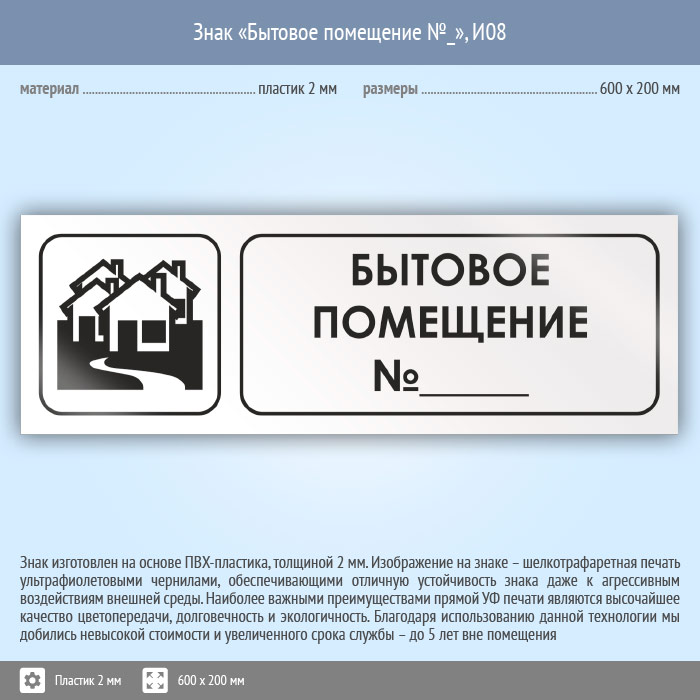 Знак «Бытовое помещение №_», И08 (пластик, 600х200 мм) в Курске купить