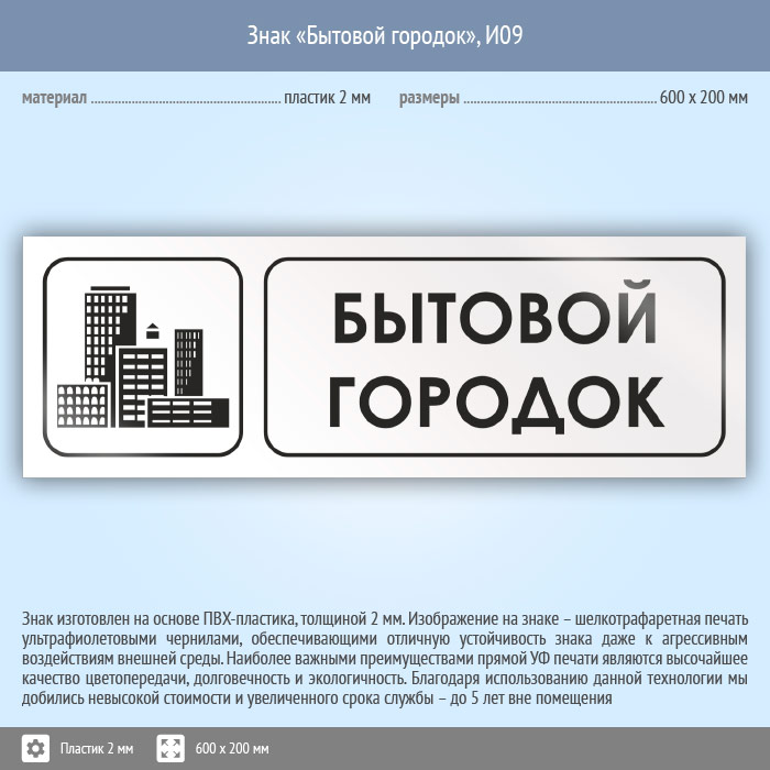 Знак «Бытовой городок», И09 (пластик, 600х200 мм) в Курске купить