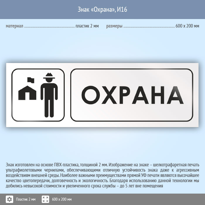 Знак «Охрана», И16 (пластик, 600х200 мм) в Курске купить