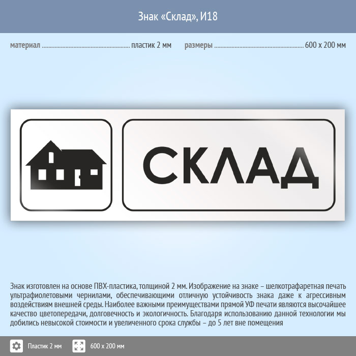 Знак «Склад», И18 (пластик, 600х200 мм) в Курске купить