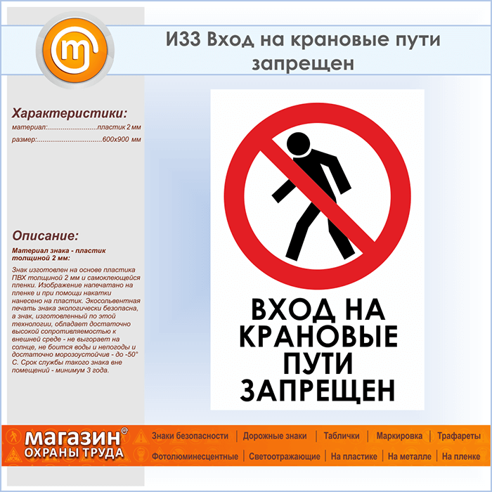 Знак «Вход на крановые пути запрещен», И33 (пластик, 600х900 мм) в Курске купить