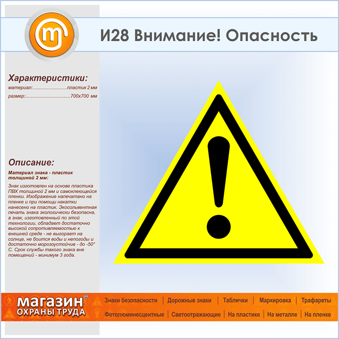 Знак «Внимание! Опасность», И28 (пластик, сторона 700 мм) в Курске купить