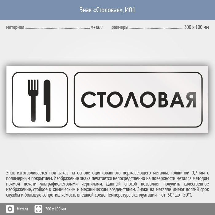 Знак «Столовая», И01 (металл, 300х100 мм) в Курске купить