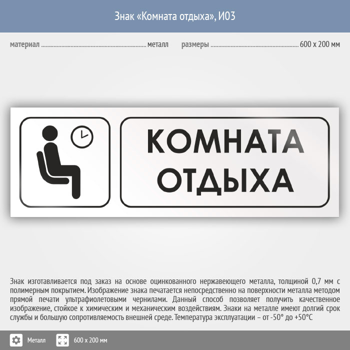 Знак «Комната отдыха», И03 (металл, 600х200 мм) в Курске купить