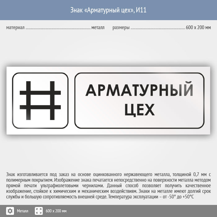 Знак «Арматурный цех», И11 (металл, 600х200 мм) в Курске купить