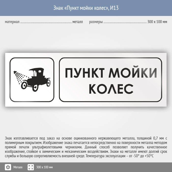Знак «Пункт мойки колес», И13 (металл, 300х100 мм) в Курске купить