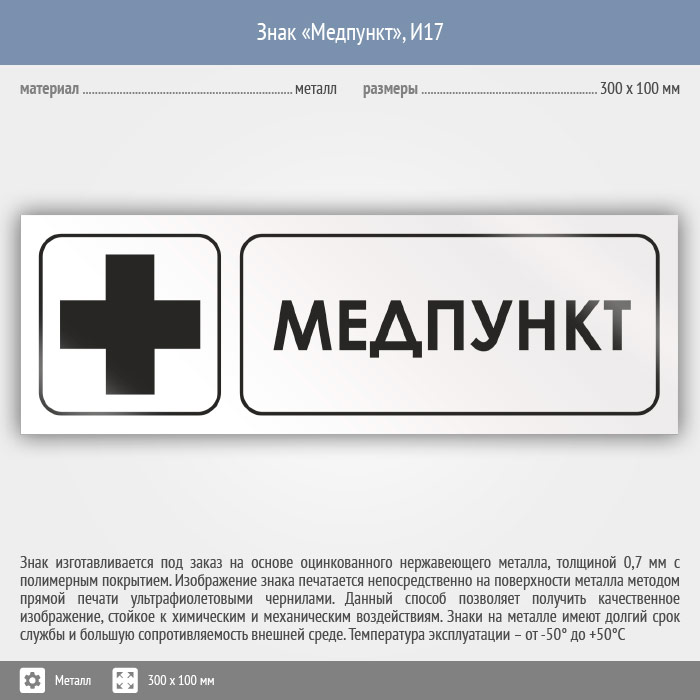 Знак «Медпункт», И17 (металл, 300х100 мм) в Курске купить