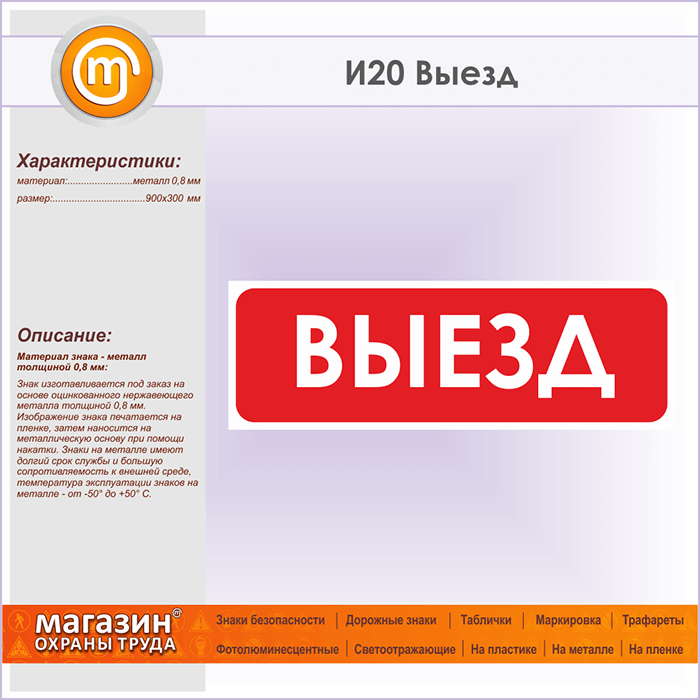 Знак «Выезд», И20 (металл, 900х300 мм) в Курске купить