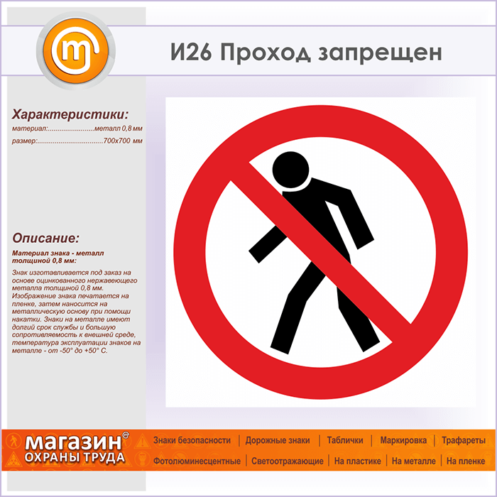 Знак «Проход запрещен», И26 (металл, 700х700 мм) в Курске купить