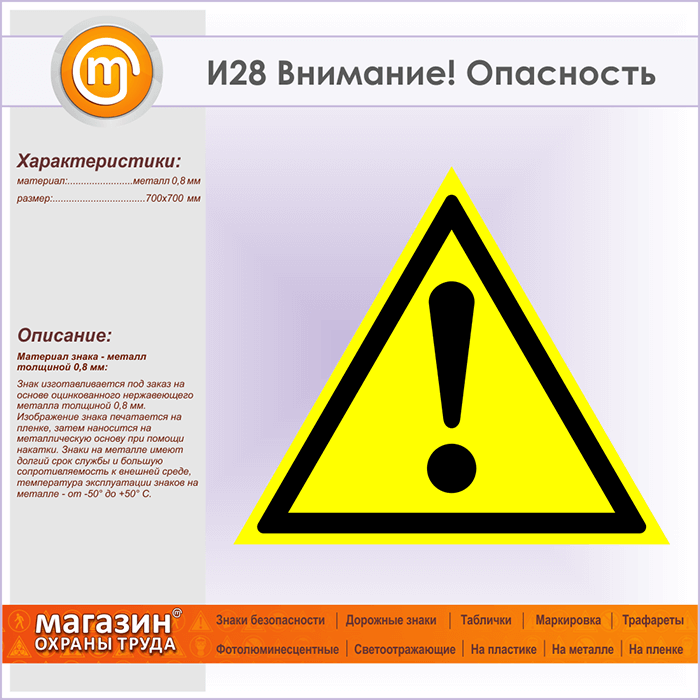 Знак «Внимание! Опасность», И28 (металл, сторона 700 мм) в Курске купить