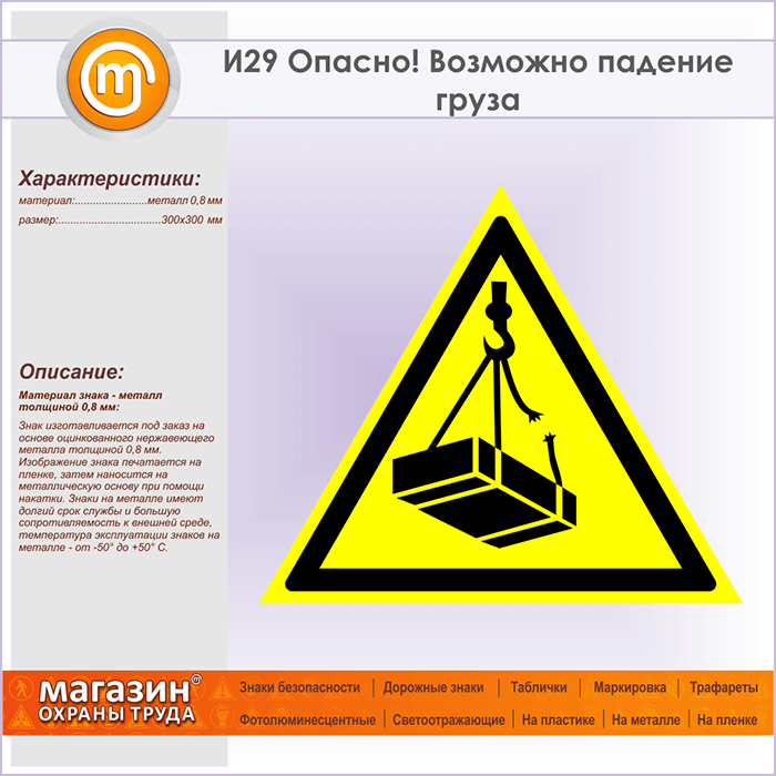Знак «Опасно! Возможно падение груза», И29 (металл, сторона 300 мм) в Курске купить