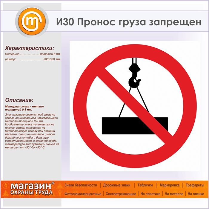 Знак «Пронос груза запрещен», И30 (металл, 300х300 мм) в Курске купить