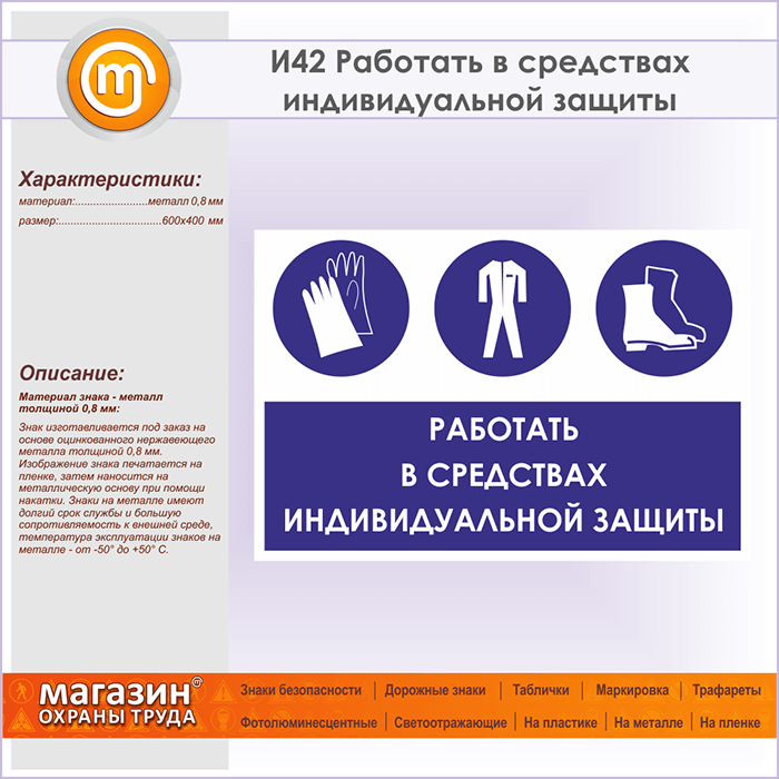 Знак «Работать в средствах индивидуальной защиты», И42 (металл, 600х400 мм) в Курске купить