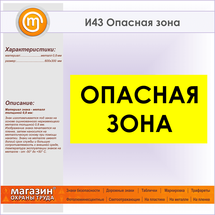 Знак «Опасная зона», И43 (металл, 600х300 мм) в Курске купить