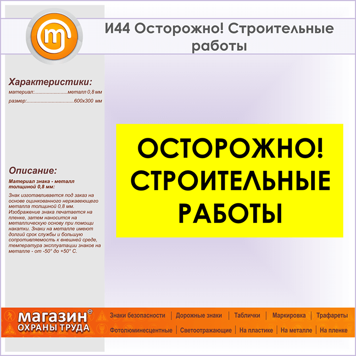 Знак «Осторожно! Строительные работы», И44 (металл, 600х300 мм) в Курске купить
