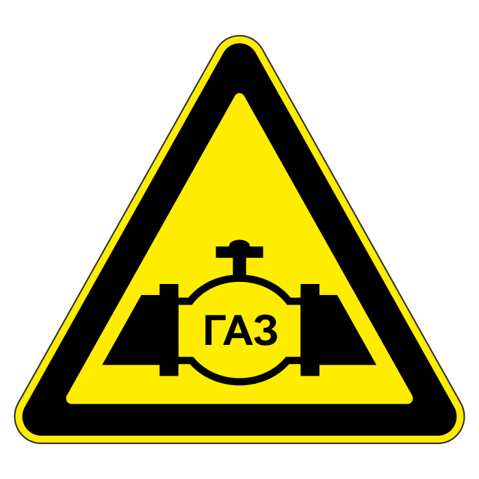 Знак «Осторожно газопровод», МГ-2 (металл 0,8 мм, II типоразмер: сторона 900 мм, С/О пленка: тип А коммерческая) в Курске купить
