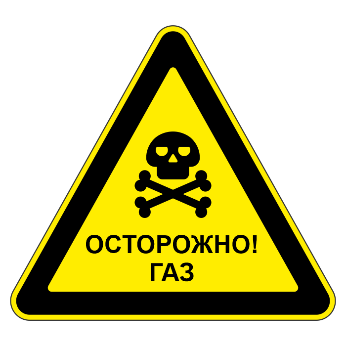 Знак «Осторожно! Газ», МГ-6 (металл 0,8 мм, II типоразмер: сторона 900 мм, С/О пленка: тип В алмазная) в Курске купить