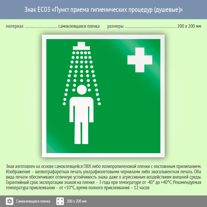 Знак EC03 «Пункт приема гигиенических процедур (душевые)» (пленка, 200х200 мм) в Курске купить
