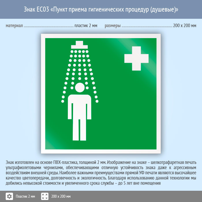 Знак EC03 «Пункт приема гигиенических процедур (душевые)» (пластик, 200х200 мм) в Курске купить