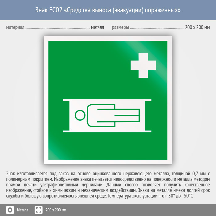 Знак EC02 «Средства выноса (эвакуации) пораженных» (металл, 200х200 мм) в Курске купить