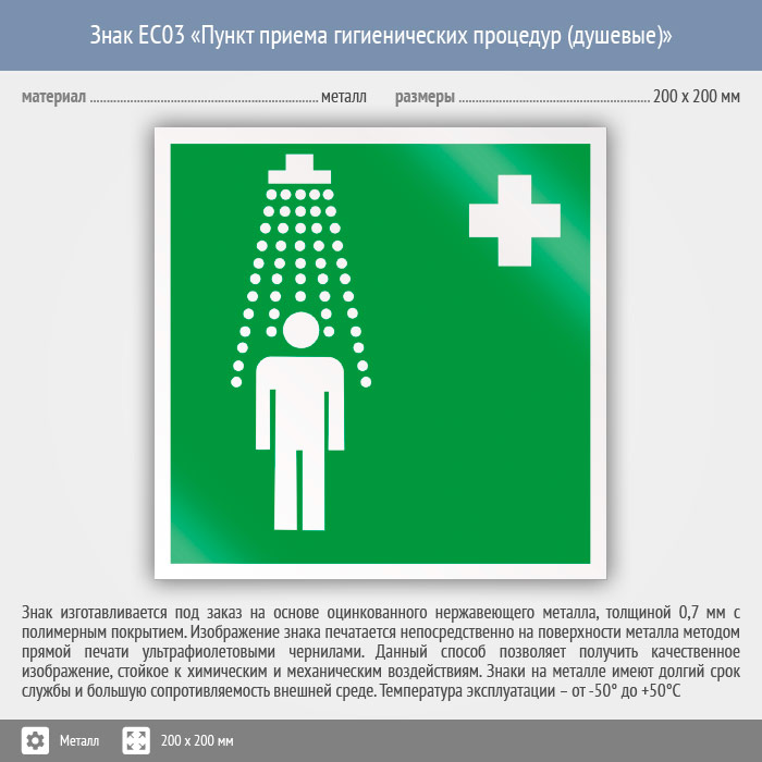 Знак EC03 «Пункт приема гигиенических процедур (душевые)» (металл, 200х200 мм) в Курске купить