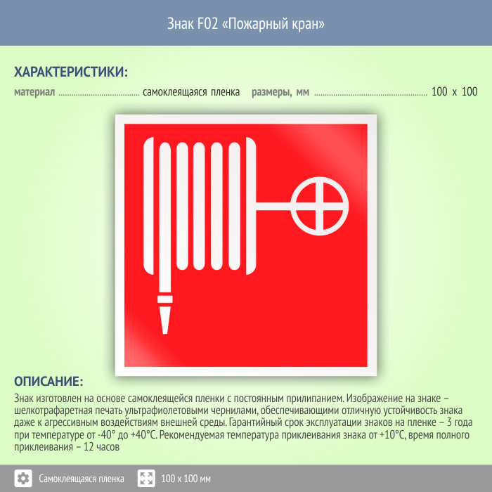 Знак F02 «Пожарный кран» (пленка, 100х100 мм) в Курске купить