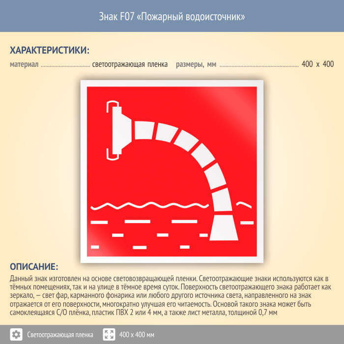 Знак F07 «Пожарный водоисточник» (светоотражающая пленка, 400х400 мм) в Курске купить