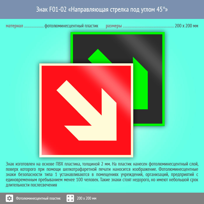 Знак F01-02 «Направляющая стрелка под углом 45°» (фотолюминесцентный пластик, 200х200 мм) в Курске купить