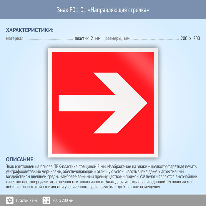 Знак F01-01 «Направляющая стрелка» (пластик, 200х200 мм) в Курске купить