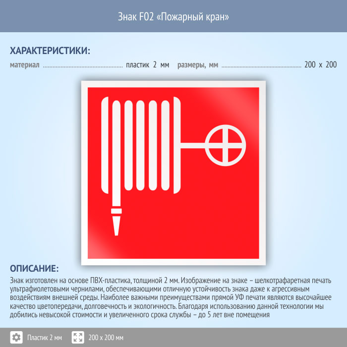 Знак F02 «Пожарный кран» (пластик, 200х200 мм) в Курске купить