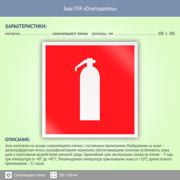 Знак F04 «Огнетушитель» (пленка, 200х200 мм) в Курске купить