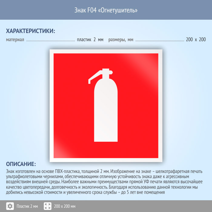 Знак F04 «Огнетушитель» (пластик, 200х200 мм) в Курске купить