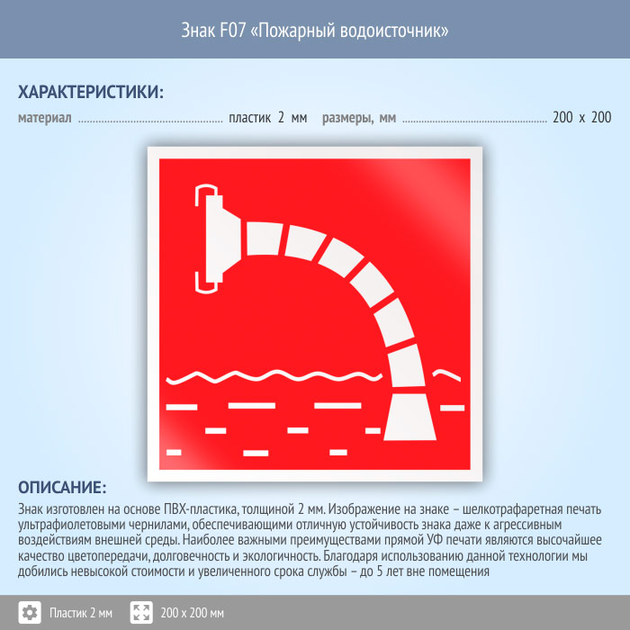 Знак F07 «Пожарный водоисточник» (пластик, 200х200 мм) в Курске купить