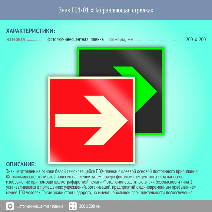 Знак F01-01 «Направляющая стрелка» (фотолюминесцентная пленка, 200х200 мм) в Курске купить