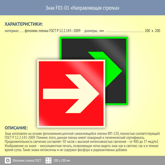 Знак F01-01 «Направляющая стрелка» (фотолюминесцентная пленка ГОСТ 34428-2018, 200х200 мм) в Курске купить