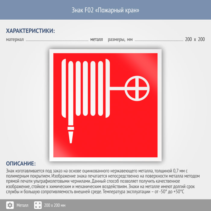 Знак F02 «Пожарный кран» (металл, 200х200 мм) в Курске купить