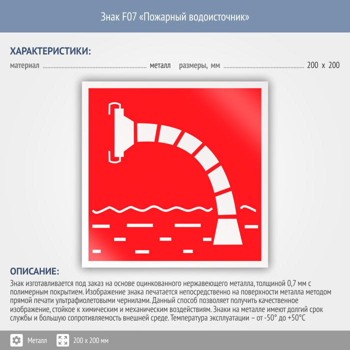 Знак F07 «Пожарный водоисточник» (металл, 200х200 мм) в Курске купить